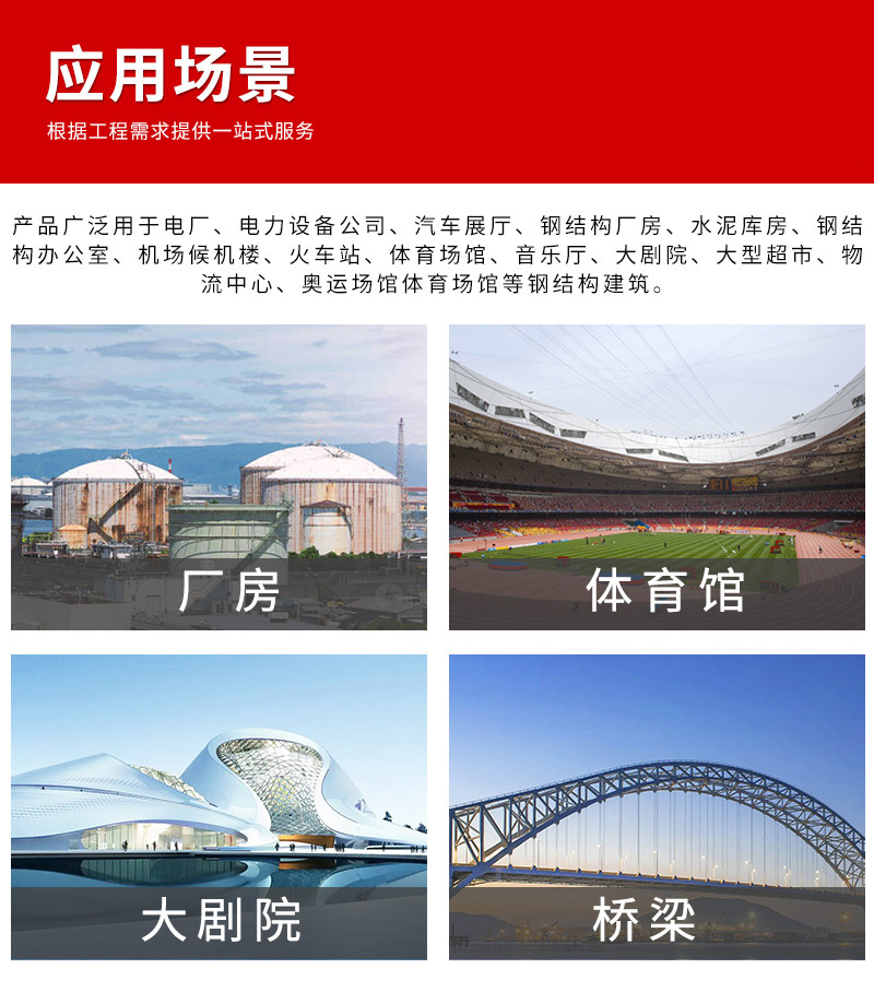 具有自重輕、強(qiáng)度高、鋼度大、防腐性好、抗震性強(qiáng)、耐火性佳、施工便捷、易于更新,同時符合國家倡導(dǎo)的節(jié)能、環(huán)保、安全要求。